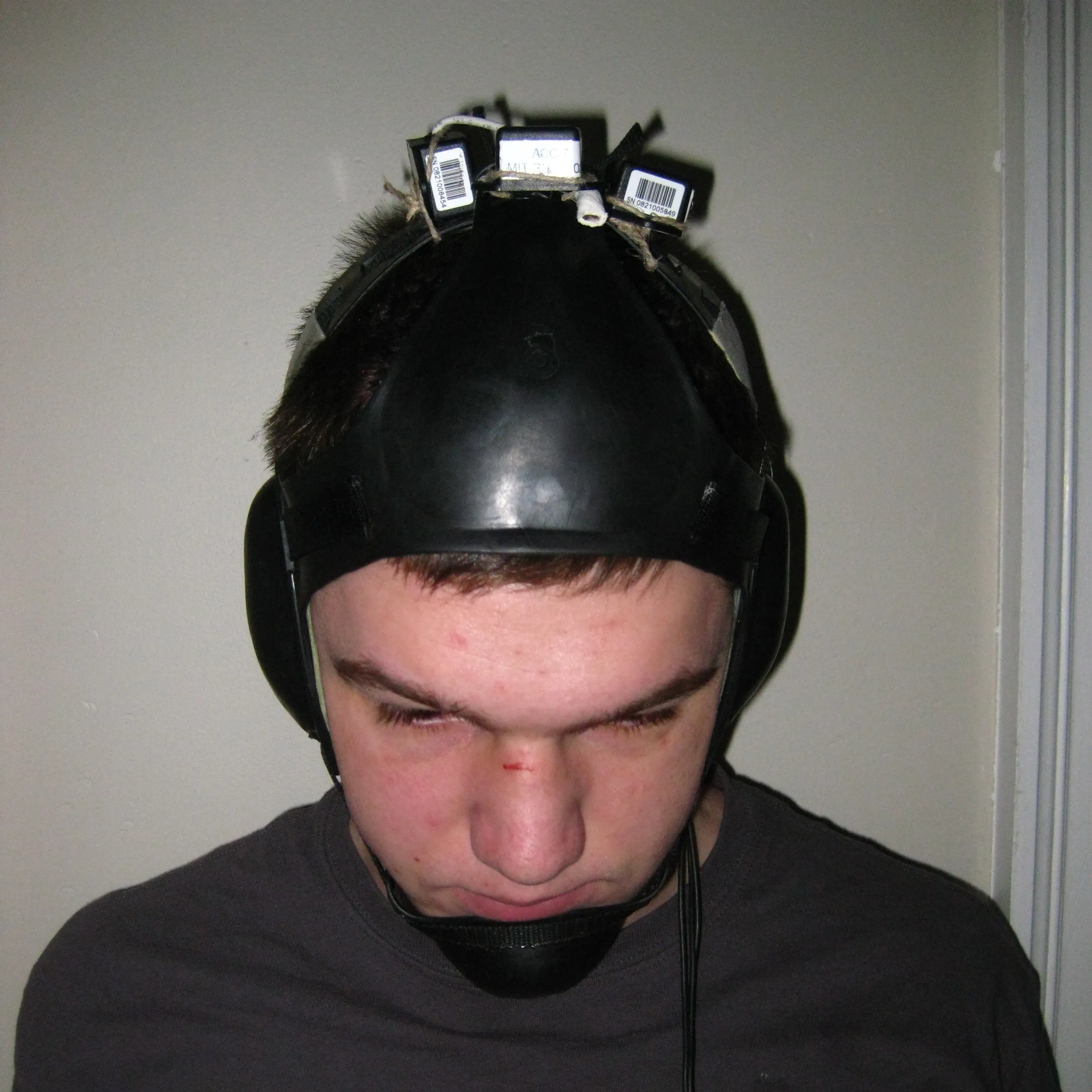 I strapped an array of accelerometers to my headgear, and, much to my parents’ chagrin, headed back to the mat to gather data. And what I mesaured supported what I had experienced. Wrestling wasn’t registering any particularly massive hits, but I was being exposed to numerous smaller head accelerations. And many weren’t caused by direct impacts.